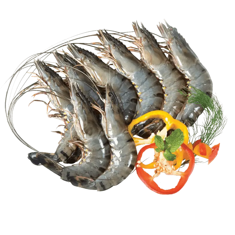 Our organic Black Tiger prawns, scientifically known as Penaeus monodon, thrive in sustainable aquaculture in southern Vietnam.